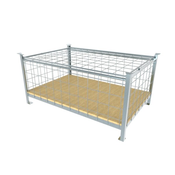 Gitterbox Typ D Universeller Behälter im Standard Grundformat 1200mm x 800mm. Beladen sowie im Leerzustand gefaltet stapelbar. Die Frontklappe erleichtert dein Zugriff in die Gitterbox. Weitere Varianten auf Anfrage. Aufbau Verschweißter & verschraubter Stahlrahmen Maschenweite 65x120mm Oberfläche: verzinkt Traglast: 1000kg Bei Fragen zu unseren Produkten oder speziellen Konfigurationswünschen kontaktieren Sie uns gerne unter +43 2984…