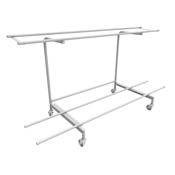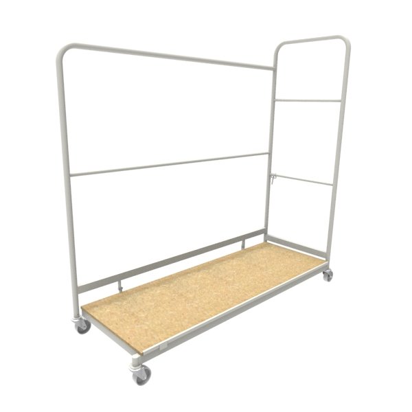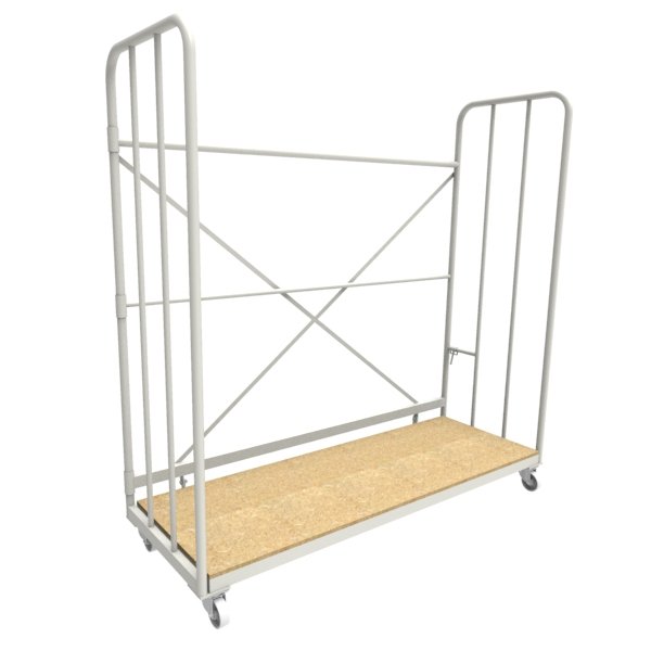 UNO – Garniturenwagen Ideal geeignet für Lagerung, Kommissionierung und Transport von Sitzgarnituren. Mittels Erweiterung Auszüge ergibt sich eine Gesamtbreite von 3.100mm. Mit Erweiterung Boden klappbar faltbar und nestbar. Aufbau Verschweißter Stahlrohrrahmen Oberfläche: Pulverbeschichtet Standard-Rollen: 4 Stk. Lenkrollen Polyamid, Ø100 mm Beladung Eigengewicht: ab 35 kg – je nach Ausführung Traglast: 300 kg Auflast untere Ebene:…